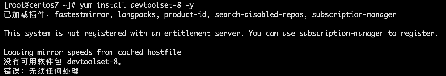 如仍然报错No package devtoolset-8-gcc* available